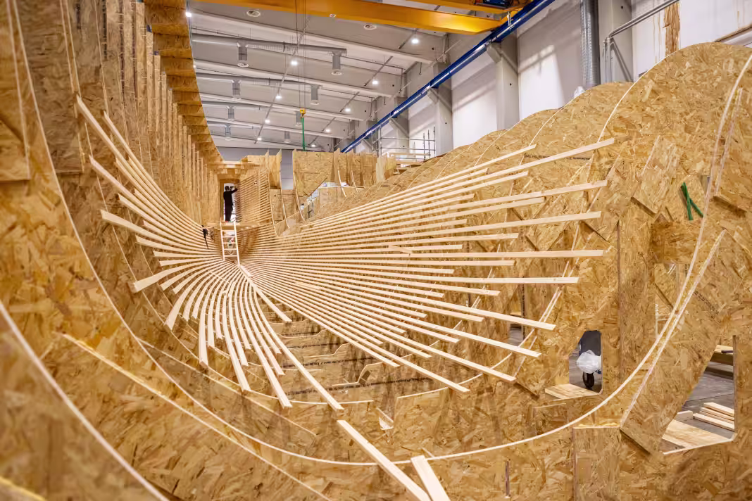 Un contreplaqué fin a été fixé, recouvert ensuite de mousse, puis la structure composite finale du moule a été mise en place. Cette méthode est propre à Baltic, spécialiste des constructions sur mesure. Ainsi, quiconque souhaiterait obtenir un exemplaire similaire du catamaran devra obtenir préalablement l’accord du propriétaire, à condition que le moule soit encore disponible.