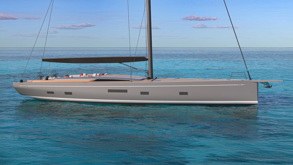 La coque affichera une longueur de 22,35 mètres pour une largeur de 6,60 mètres. La ligne de flottaison atteindra 19,84 mètres et le tirant d’eau sera de 3,95 mètres en version standard. Le déplacement se situera autour de 41 tonnes et la surface de voilure atteindra 365 mètres carrés. Les réservoirs offriront chacun une capacité de 1500 litres pour l’eau douce et le carburant. L’intérieur sera organisé autour de quatre cabines, chacune avec sa salle de bain, ainsi que des espaces réservés à l’équipage.