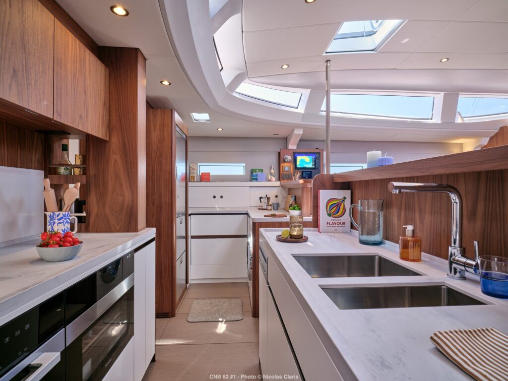 Le CNB 62 se présente comme la relève directe du Bordeaux 60. Philippe Briand assure la conception navale tandis que l’aménagement intérieur est confié à Jean-Marc Piaton. L’idée centrale est de proposer un yacht qui soit élégant, marin, performant, mais aussi accessible pour un couple sans équipage professionnel. L’ensemble du projet est en cours de production au chantier Solaris, dans ses installations d’Aquileia, dans le nord de l’Italie.