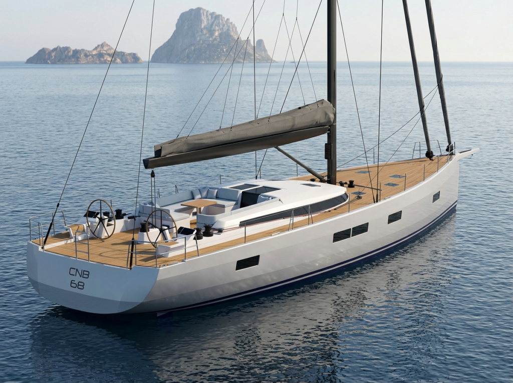 Le CNB 68 s’impose comme la nouvelle référence de la grande croisière au sein de la célèbre gamme désormais construite sous l’égide du groupe italien Solaris Yachts. Intercalé stratégiquement entre le CNB 62 et le prestigieux CNB 78, avec ses 22 mètres de long. Fruit d’une nouvelle collaboration entre l’architecte naval Philippe Briand et le designer d’intérieur Jean-Marc Piaton, il perpétue l’ADN visuel de la marque tout en bénéficiant de la rigueur et de l’excellence de construction qui font la renommée de son nouveau chantier.