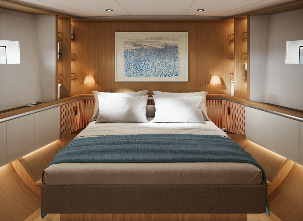 Ce voilier embarque des capacités de stockage lourdement dimensionnées pour garantir une autonomie sereine au long cours, avec des réservoirs accueillant 1 200 litres de carburant et 1 000 litres d’eau douce.