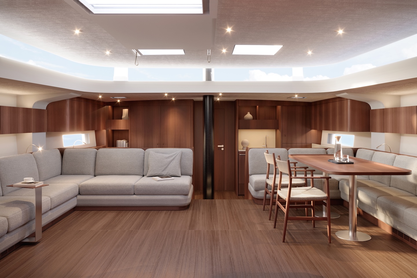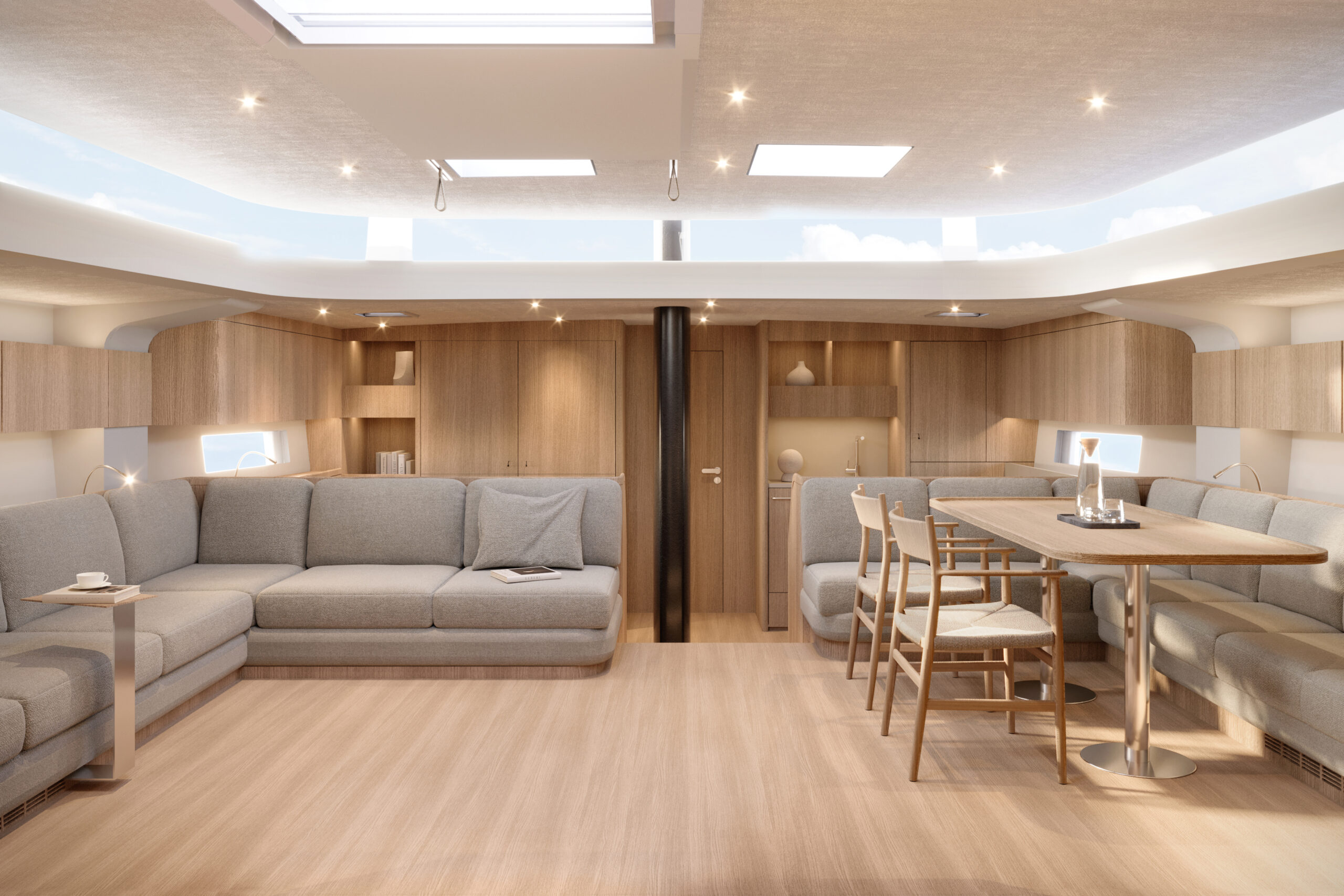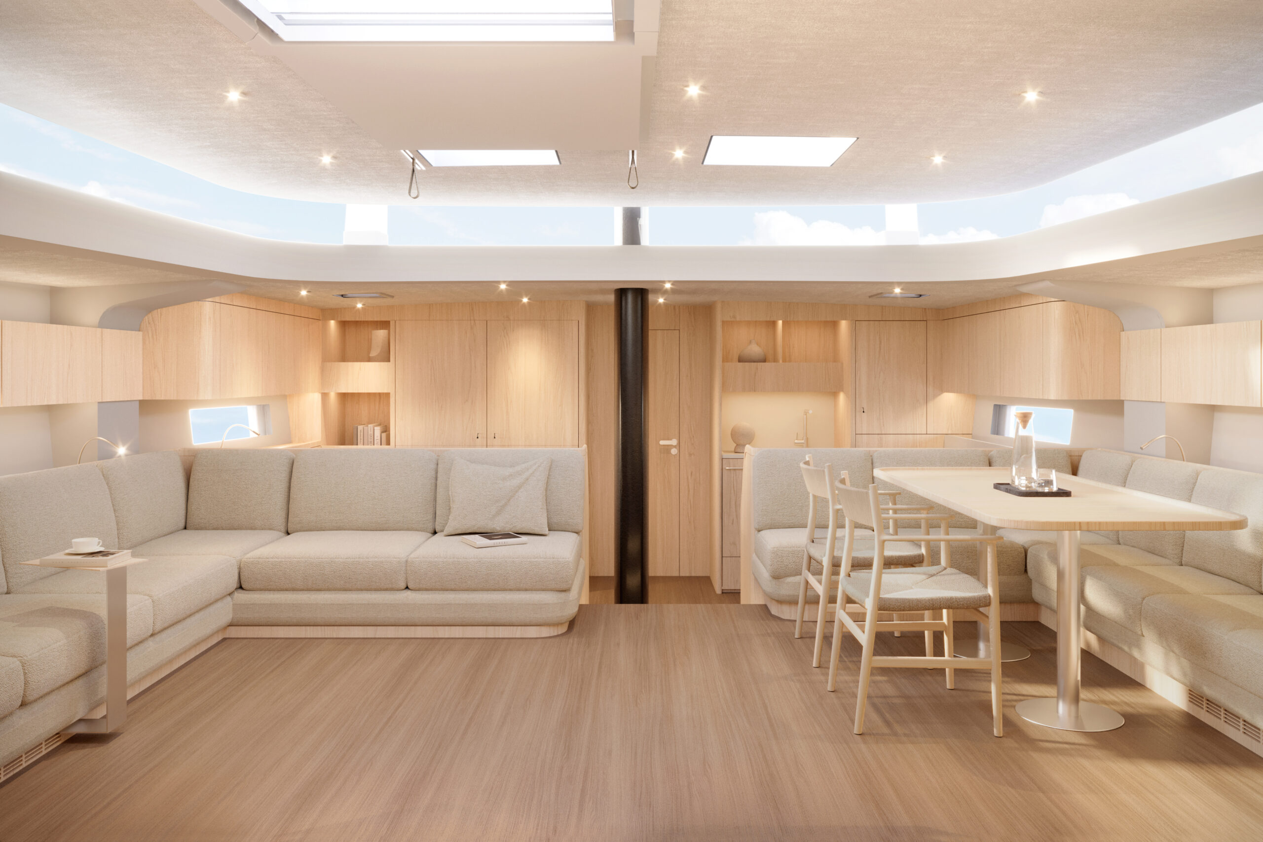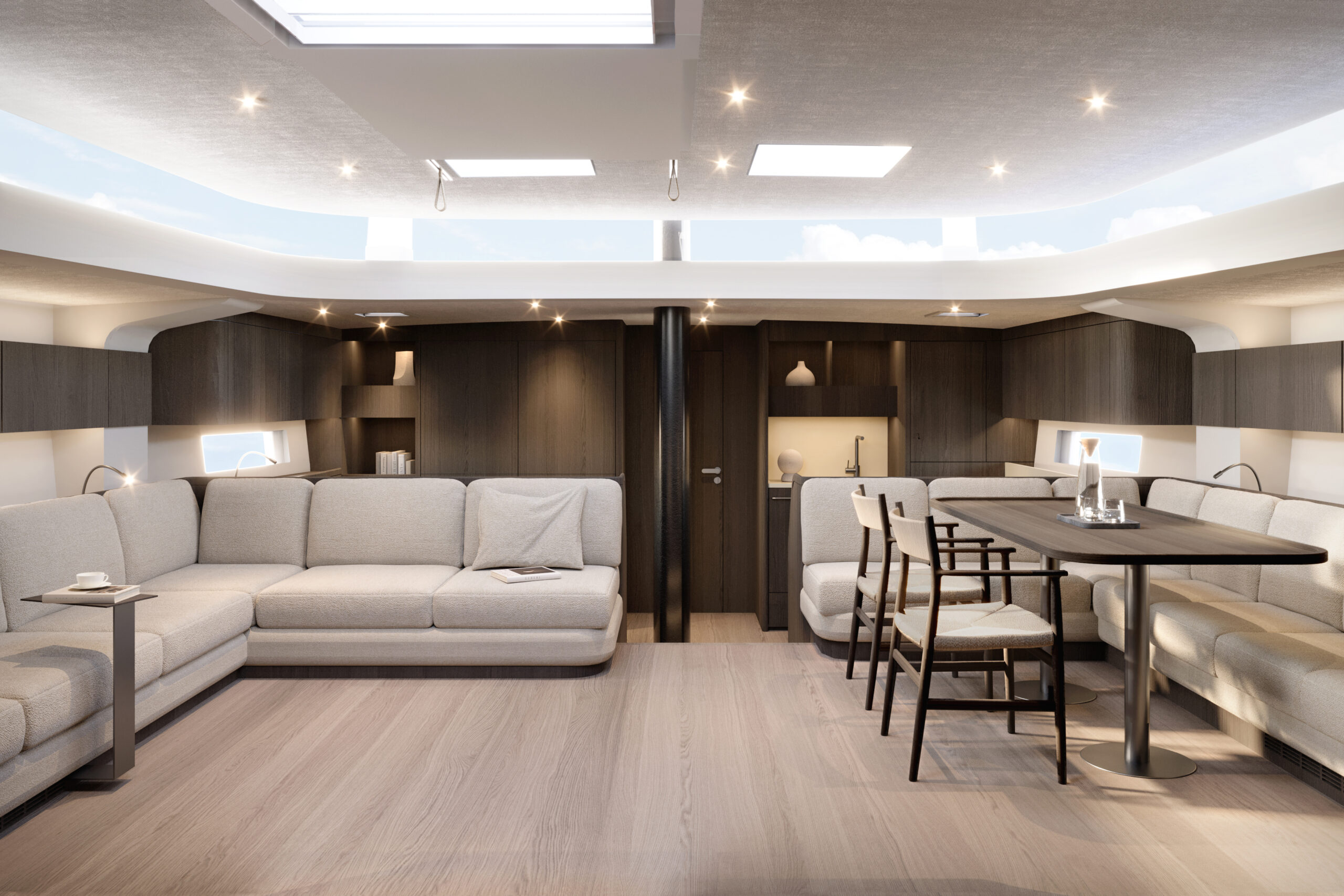 Le pont est repensé avec une entrée asymétrique claire, des espaces plus grands entre les postes de barre et les winchs pour améliorer le flux des manœuvres, la sécurité, et la facilité de déplacement. L’espace de cockpit adopte un sofa en “U” du côté tribord pour plus de confort. Les chemins d’accès pour l’équipage sont séparés pour préserver l’intimité des invités.